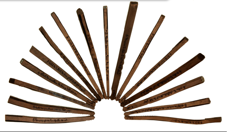 The National Archives, London “Tally Sticks.” The British Library. https://www.bl.uk/collection-items/tally-sticks#:~:text=Made%20of%20hazel%20wood%2C%20the,being%20retained%20by%20the%20Exchequer. Date Accessed 7 October, 2020.